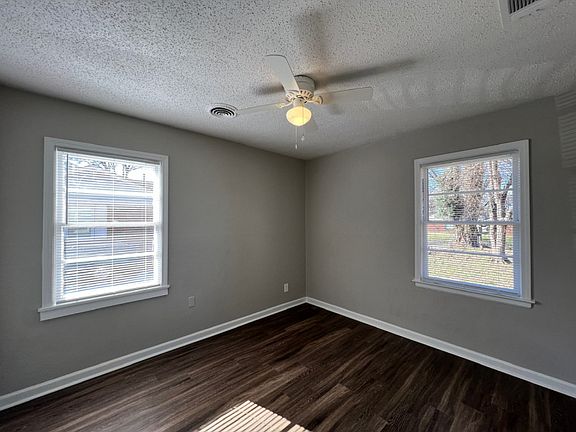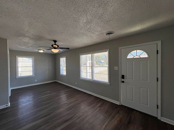 This charming home, set on a slab foundation, showcases beautiful hardwood floors throughout. The kitchen is well-equipped with a dishwasher for your convenience. Ceiling fans are installed in all bedrooms, enhancing comfort, and the welcoming front porch adds a perfect touch of charm.