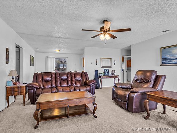 If you’re looking for quiet country living with room for animals, you have found it! This home sits on 10 beautiful acres with a barn that has a loft and a slab floor. Thru the West gate, you will find a two stall metal barn/lean to with a tack room for storage. There is also a round pen! A perfect set up for your horses. The house boasts an open concept living/dinning area with plenty of cabinet space in the kitchen. Just through the living room you enter the large primary bedroom that has a his & her closet. The primary bath has a tub/shower combo. On the south side of the house are the other two bedrooms with a bathroom in between in the hallway. These two bedrooms are a good size with good closet space. Lots of natural light throughout the house! The front porch is covered with a slab and is perfect for your grill or smoker. Lots of potential with this one. Don’t miss it! Call for a showing today.