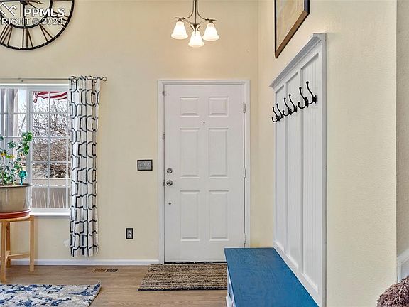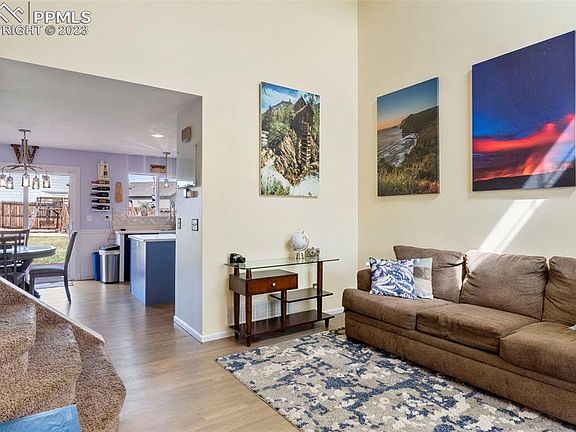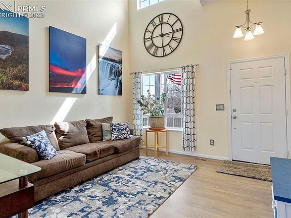 Welcome home! This beautifully maintained property offers the perfect blend of comfort and style. As soon as you step inside, you'll be struck by the abundance of natural light that floods the main level, highlighting the gorgeous hardwood floors that have been recently re-finished and stained. The kitchen is a chef's delight, with a gas stove, marble tile backsplash, and sleek stainless-steel appliances. The family room is a cozy oasis with a Napoleon electric fireplace surrounded by exquisite marble tile. The fully finished basement is perfect for additional living space or guests, featuring an additional family room, a large bedroom with a custom barn door, and full bathroom. The upstairs boasts a spacious master bedroom with a 5-piece master bath and walk-in closet with custom built-ins, plus 3 additional bedrooms and another full bathroom. Head outside to the large backyard and you'll find a fire-pit, sitting area, and swing set for the kids, all perfect for creating cherished memories with family and friends. You'll love spending summer evenings on your newly renovated 32' x 16' trex composite deck with solar lighting. The exterior of the home was painted in 2020 and upgraded to a class III roof in 2021, giving you peace of mind for years to come. Located in a highly desirable area, this home offers easy access to I-25 and Powers Boulevard, making commuting a breeze and providing convenient access to shopping, dining, and entertainment options. Make this house your home today!