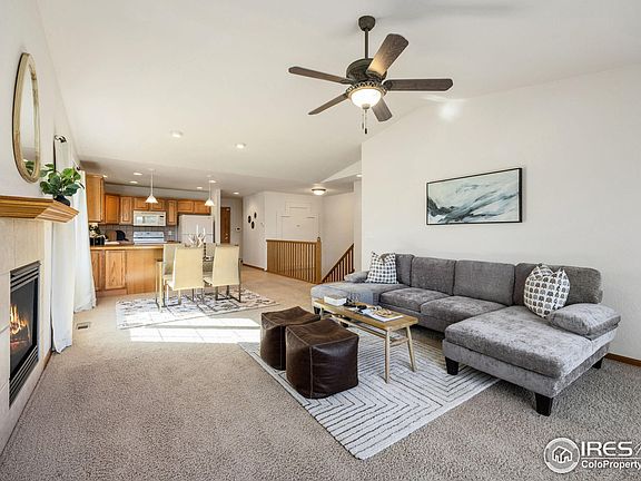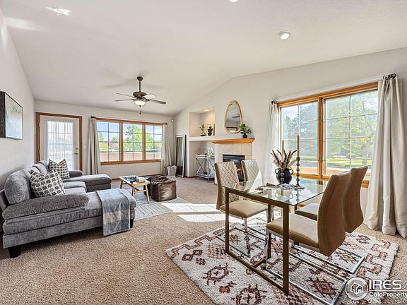 Welcome to this beautifully maintained paired patio home, nestled near the foothills in NW Loveland. Backing to peaceful open space, it offers close proximity to Downtown Loveland's vibrant shops and restaurants. Outdoor enthusiasts will love the easy access to Devil's Backbone, Horsetooth Reservoir, and the scenic Loveland Recreational Trail. This inviting home features a full, unfinished basement, providing a blank canvas for future expansion. Thoughtfully designed with a ranch-style layout, the main level includes all essential living spaces-two bedrooms, two bathrooms, and a convenient laundry room. The open floor plan is bathed in natural light, boasting a spacious kitchen with a large peninsula for extra seating, a cozy gas fireplace in the living room, and a dedicated dining area. Step outside to your fenced backyard, where you'll enjoy privacy with no neighboring homes directly behind, plus stunning mountain views. Meticulously cared for by the owner, this low-maintenance property benefits from HOA-covered services, including landscaping, exterior maintenance, non-potable irrigation, insurance, and snow removal to your door. Don't miss your chance to own this move-in-ready home in an ideal Loveland location!