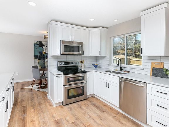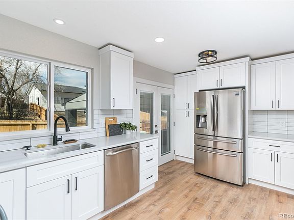 Welcome to this recently renovated Morrison home! The open concept home features abundant natural light and designer finishes throughout! The bright and open kitchen with brand new quartz counters, stainless steel appliances, subway tile, and soft close cabinetry are ready for you to make your favorite meal or drink at home and unwind after a long day. The large living room welcomes family or friends and the lower level family room make this the perfect home for entertaining. Make meal time memories in the dining room with enviable afternoon light from the oversized West facing windows. The kitchen flows perfectly into the oversized back yard and patio featuring a built in wood burning fireplace and brand new sod and sprinkler system, perfect for Summer get togethers! The home boasts four bedrooms and three bathrooms including an en suite primary bath featuring a double vanity and a walk in closet. With new windows, a new sewer line, new furnace, new air conditioning, new water heater, and foundation repairs in 2022, you'll be able to live like new in an established neighborhood. With an insurance backed 2-10 Remodelers Warranty, you'll have peace of mind that you made the right choice calling this house your home!