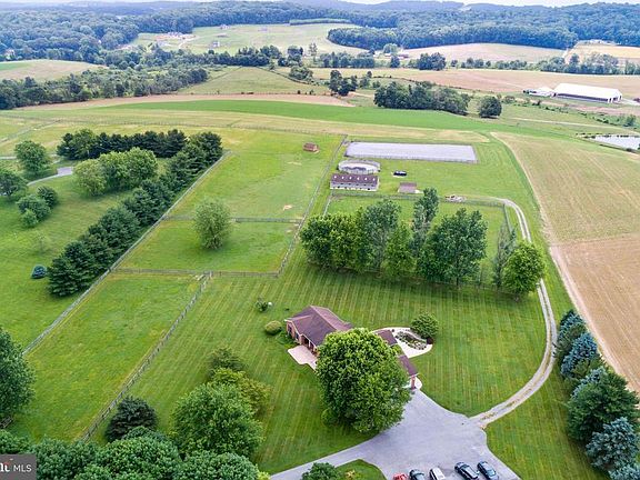 Taking back-ups. Carroll County Horse farm at it's best. Long drive to a large beautiful rancher with 2 complete finished levels - 4 bedrooms (2 masters) and 3 full baths on the main level with the living room, kitchen, family room and mudroom laundry. Plus family room, full bath, laundry room and possible bedroom on the lower level. The main level boasts hardwood floors throughout. Relax in the upstairs family upstairs on those cold winter days in front of the wood burning fireplace. And venture out to the patio to enjoy the wonderful landscaping including a fish pond. But enough about the home - let's check out the barn and pastures. Your horses will easily settle into this 10 stall barn with tack storage and a wash stall. Stalls include mats and are convertible from 10x10 to 10x20. 10 acres is fenced with 6 pastures with 3 and 4 wood fence ( electric option top and bottom. There is a stallion and/or quarantine field. 2 pastures include goat field fence. 3 pastures have water and electric. Newer board and batten wood 10x20 run-in shed. There is a 60' round training or quarantine pen with stone dust. The riding ring is 100'x200' with stone dust and rubber footing. . Plus there is room to expand to the back 6 acres currently under lease with alfalfa giving you the total of 20.9 acres. Little extras - lots of shade trees, 3 car garage with heat, ac and shelving, kitchen has maple cabinets, granite counters, and stainless appliances, 2 storage sheds, Comcast internet (1 gig), radon system, LED lighting. Tractor and truck with plow are negotiable! One year home warranty is included. What more could you be looking for????