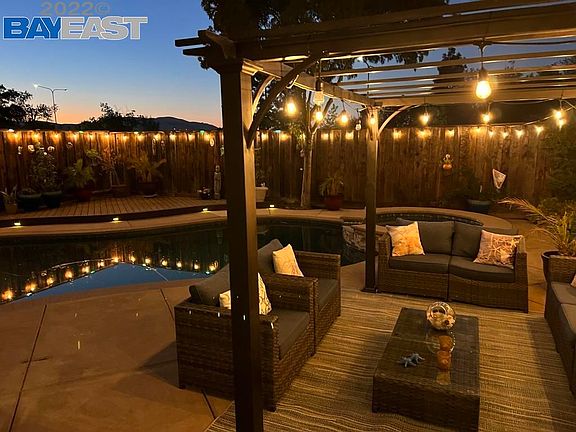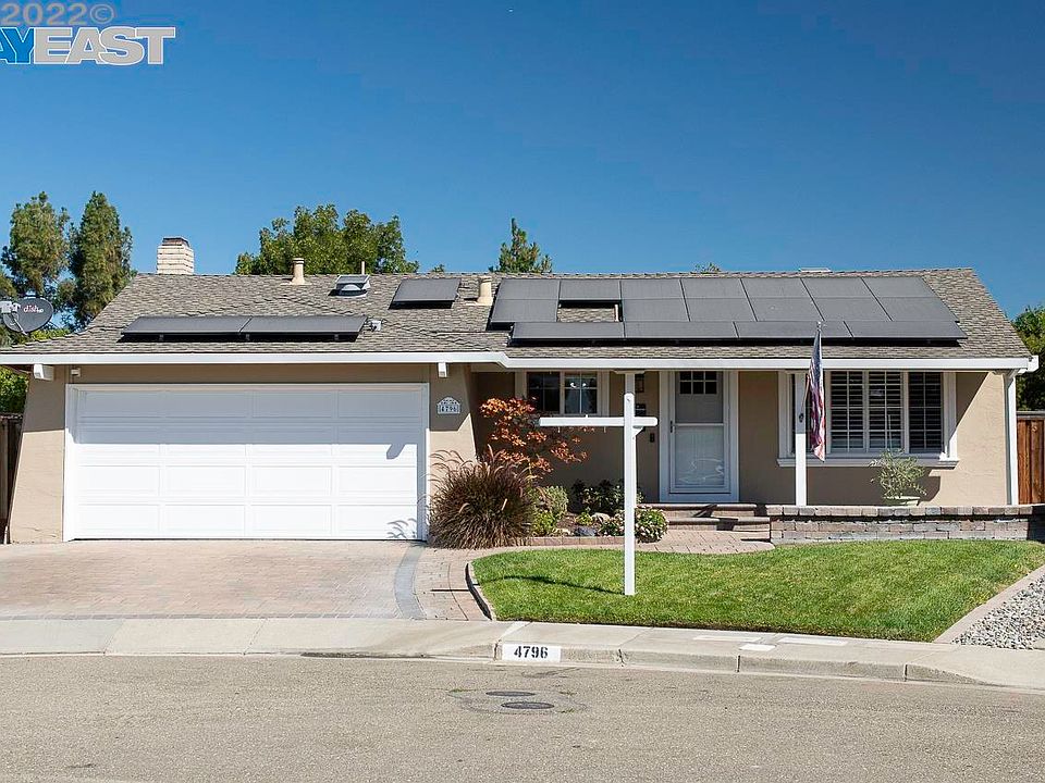 WOW - ANOTHER PRICE ADJUSTMENT! Celebrate your holidays by the heated, saltwater pool with family and friends this year! This stunning, move-in ready, and tastefully updated home has a gorgeous paved driveway and front patio. Every room has been lovingly cared for, making this home an entertainer’s dream. Cook for your holiday guests and family in the remodeled kitchen w/stainless steel appliances, granite counters, large island, and a pantry featuring pull-outs shelves. The family room boasts a stacked stone, clean burning electric fireplace surrounded by built-in cabinets. The very large formal living room has recessed lighting, can be used as an office or bonus room. All bedrooms feature brand new custom closets with organizers. The beautiful backyard is perfect for our California weather and has a sparkling saltwater pool with attached spa, all-weather deck, a grassy area w/fruit trees and raised garden beds in the side yard. No rear neighbors allow for complete privacy. Energy efficient features include owned solar, tankless water heater, and whole-house water filtration. With those highly-rated schools within steps, minutes away from downtown, Stoneridge Mall, the San Fransisco Outlets, freeways and Bart, and AT THIS PRICE? This home has it ALL!!
