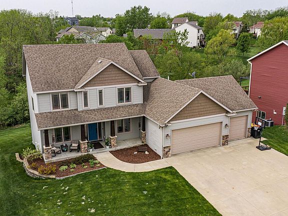 Welcome to your dream home! This stunning two-story, 5 bedrooms, 4 bath home is situated on a quiet cul-de-sac and boasts a private backyard and large front porch that's perfect for entertaining and relaxing. As you enter the home, you'll immediately be impressed by the spacious and inviting main floor great room, complete with a cozy gas fireplace and beautiful hickory floors. The kitchen is a chef's delight, Hickory cabinets, stainless steel appliances, double ovens, island, and a walk-in pantry. Upstairs, you'll find 4 of the bedrooms, including the private master suite, which features an en-suite bathroom with double sinks, a large, tiled shower, and soaker tub. The lower level of the home is fully finished and features a huge family room that's perfect for movie nights or game nights with family and friends. The space has fireplace footing and wired for sound, larger 3 car garage and irrigation system for yard & invisible Fence. Close to Everything!