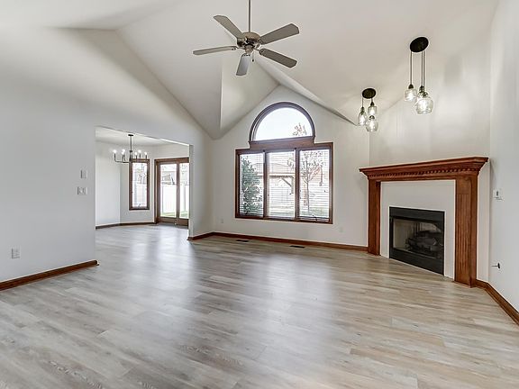 Welcome to this stunning Ranch-style home in the desirable Pinestone community. As you step inside, you're greeted by a spacious great room boasting a soaring double cathedral ceiling, a cozy corner fireplace and natural light streaming through a charming half-circle window. The kitchen showcases Grabill cabinets, complete with dovetailed drawers, offering both quality and functionality. The master bedroom features a raised ceiling and an ensuite bath, complete with a corner garden tub, a double sink vanity, a separate shower, and a generously-sized walk-in closet. Step outside to discover the backyard oasis, enclosed by a 6-foot vinyl fence, complete with a beautiful covered patio/pavilion, perfect for summer fun and entertaining guests. This home boasts newer LVP flooring throughout most of the living space. Other features included: Nest thermostat and doorbell, Anderson windows, finished garage with ample storage space above. All appliances, including the washer and dryer, are included for your convenience but not warranted.