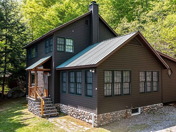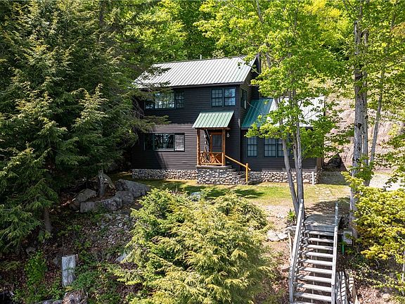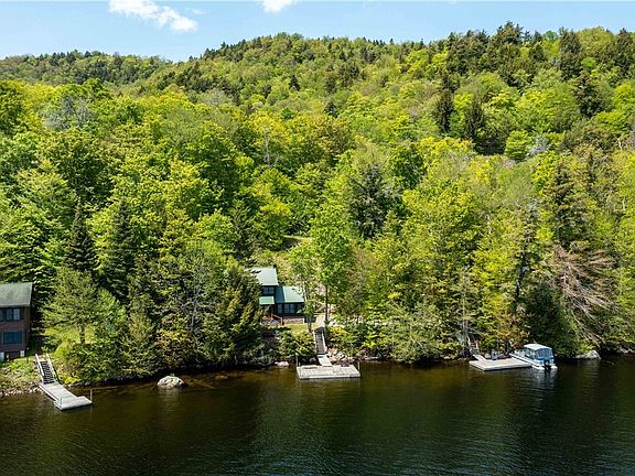 This easy living home sits on 150' of shoreline on Fourth Lake. It has a large floating dock and a patio for enjoying the southern exposure and deep water frontage. The home has 4 bedrooms plus eat in kitchen, living room with fireplace, separate family room, 2 and 1/2 baths. There is a guest cottage with one big room and bath with shower for seasonal use. A connected shed has room for tools and some storage.