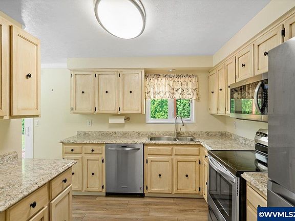 Located in a quiet cul-de-sac, this meticulously maintained home has been well cared for for decades by the same owners. Open living spaces welcome you featuring a gas fireplace, and dining area with views to your private back yard. The kitchen has multiple working spaces and features custom antiqued, finished cabinets. Private backyard includes a covered deck, shed and a fully insulated outbuilding with power, perfect for a shop or extended office/living space. Seller will contribute $5k to closing costs.