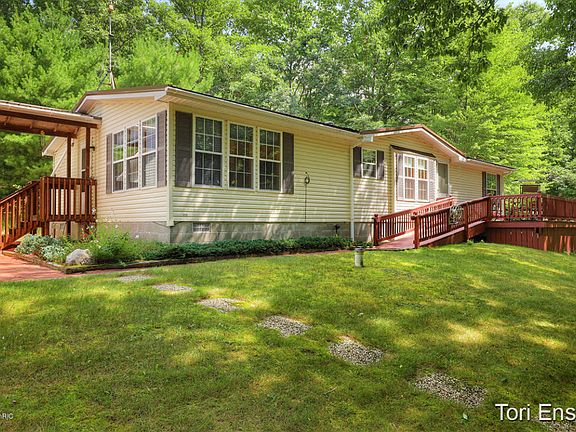 Move in ready home on 10 mostly wooded acres! This home has been very well maintained, updated steel roof, windows, and paint. 3 bedrooms and 2 full baths, with main floor laundry. Large 28 x 36 garage with paved drive. Wildlife galore! Schedule your private showing today! Home is permanently affixed.