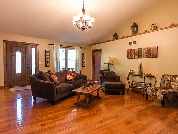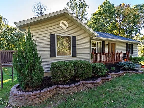 This 3-bedroom, 3-bath ranch-over-basement on a .90 acres is located between Bloomington and Unionville, just 7.4 miles to Indiana University and east-side shopping and conveniences. On the main level, the home features 3 bedrooms and 2 full baths, along with a large great room with vaulted ceilings, gas fireplace, kitchen and dining area. The ample master suite has a soaking tub and walk-in shower, large walk-in closet, a private deck and access to the laundry room. The finished basement leads to a screened porch with built-in hot tub and offers a full bath, wet bar/entertainment area and room to build a 4th bedroom. The home has a large, 2.5-car garage with new epoxy coated floor and storage shelving as well as many updates, including a 3-year-old roof and paved driveway, newer hardwood floors and carpet.