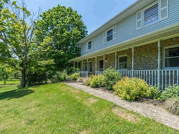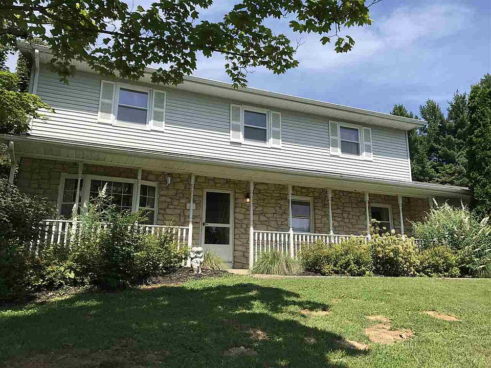 This lovely two-story home on Bloomington's south side is move-in ready after a remodel to add a new full bath on the second floor, fresh paint and new stainless steel appliances, Fall 2017 Minutes from I69, this 1.8 acre property has a fully fenced back yard and a large poured concrete basketball court. The home features Plum Creek kitchen cherry cabinets, solid surface countertops, natural hardwood flooring, sun room, stone fireplace, beamed ceilings, main level secondary bedroom, en suite master bath (remodeled in 2013), three walk-in closets on the second floor (California Closet in the master), beautiful solid wood trim, solid six-panel doors, a two-car attached garage and a large outbuilding with room to park two more cars. The full basement is partially finished and has a professionally stained concrete floor. Adjacent basement space is plumbed to add a third full bath. This home has a new roof 2013, new Trane furnace 2014 and features zoned HVAC.