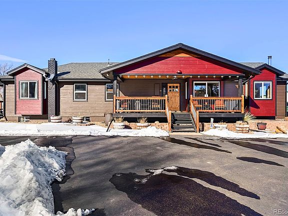 Welcome home to this incredible Parker property! Nestled on 20 acres, this extraordinary property boasts turnkey equestrian facilities, an 8-car garage/workshop, and a home brimming with charm and thoughtful updates. Lovingly maintained by the same owners for nearly 30 years, every detail of this property has been meticulously cared for, making it truly move-in ready. Originally built in 1923, the home has an addition that preserves its timeless character while offering modern comforts. Upon entering, you’ll be greeted by vaulted pine ceilings and expansive windows that flood the home with natural light and showcase the views. The open concept living and dining areas feature a cozy fireplace, while the updated kitchen flows into these spaces, making it ideal for entertaining. The main-level primary suite serves as a private retreat, complete with dual walk-in closets, a luxurious 5-piece en-suite bath with clawfoot tub, and deck access with a hot tub. The main floor also includes a secondary bedroom, 3/4 bathroom, mudroom, and access to a fenced backyard with a deck. The finished basement features two bedrooms, full bathroom, laundry room, and versatile family room with fireplace. From the covered deck, enjoy tranquil views of the landscaped, fully irrigated yard, complete with pergola and fire pit. Equestrians will delight in the 4-stall barn with attached runs, automatic waterers, hay storage, and dedicated grain and tack rooms. Adjacent to the barn is a charming grooming stall with tack lockers and a round pen. The property also includes multiple loafing sheds and paddocks throughout, an outdoor arena and a pristine indoor arena for year-round riding. For hobbyists or car enthusiasts, the 8-car detached garage/workshop offers ample space and versatility. Additional outbuildings provide storage for farm equipment or gardening supplies, while the asphalt driveway ensures convenience and accessibility. This property is one-of-a-kind! Video link: vimeo.com/1046842922