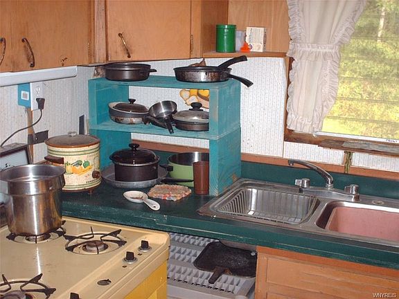 Looking for a rustic camp, private get away on a budget? This is it! 2.4 mostly wooded acres with an older 10' x 50 mobile home with an addition. Lots of large pine, spruce and larch trees. Deep narrow parcel backs up to NY State Land for extended recreational possibilities, hunting, etc. No well or septic system, but an outhouse for emergencies. Propane kitchen range. One bedroom, living room & kitchen.