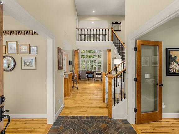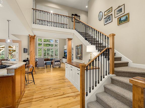 Escape to your own private oasis in this stunning craftsman style home in Lake Oswego's Bryant neighborhood. This quiet street is nearby many amenities, including the Lake Grove swim park, the Goodin & Springbrook lake easements, the shops of Lake Grove and Lamont Woods nature park. Inside, you'll find vaulted ceilings, gorgeous built-in shelves surrounding the gas fireplace and large windows in the living room to bring in the natural light. Hardwood floors throughout the downstairs and solid wood doors throughout add warmth and character to the entire space. The chef's kitchen features a gas cooktop island, built-in microwave, wall oven & warming drawer, ample countertop space and plenty of cabinets for storage. The built-in buffet was just added and is a compliment to the also new living room built-ins. Just beyond the kitchen is the formal dining room, as well as an office/den complete with built-in bookshelves. Retreat to the spacious main level primary suite with views of the beautifully landscaped backyard, dual sinks, soaking tub, step-in shower, and walk-in closet. The laundry room sits just off the garage and is complete with a utility sink and plenty of cabinets for extra storage, making laundry day a breeze. Upstairs, you'll find three spacious guest bedrooms, each with their own unique features. Don't miss the HUGE walk-in closet/craft space in the 3rd bedroom or the secret play space in the front bedroom. The entire yard is beautifully landscaped. Whether you want to entertain on the back patio under the covered area, enjoy coffee while you listen to the cascading fountain, garden in the raised beds, relax in the new hot-tub, or kick a ball in the yard, you can do it all. The garden shed has room for all your tools so you can use your spacious garage for parking. Great schools include the newly built Lakeridge Middle School, Lakeridge HS, and River Grove Elementary which is currently being rebuilt for a scheduled Fall 2024 opening.