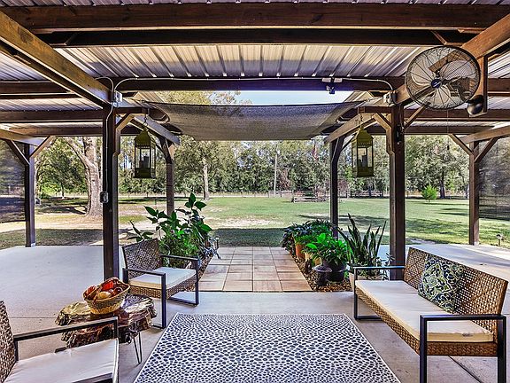 This 2-bedroom, 2-bath home sits on a 4.83 acre lot in Gilchrist County. The heart of this home is the well-appointed kitchen, complete with modern appliances and plenty of storage. A lovely dining area is just steps away, perfect for family meals. The two spacious bedrooms provide comfortable living spaces, while the bathrooms aretastefully designed withshower/tub combination. A few of the highlights of this property is the 3 beautiful covered patios, providing ideal spots for outdoor relaxation, entertaining, and enjoying the peaceful Florida weather. You'll also find two covered patios for outdoor enjoyment. There's also a metal barn/workshop for storage and projects, along with a smaller tool shed. This home is located in Trenton which means you are close to Gainesville where you have access to shopping, great health care, emergency care and lots of great places to eat. Gilchrist County school district is also an A-rated school for the best education if you have children. Don't miss out on this chance to own your own little piece of paradise!
