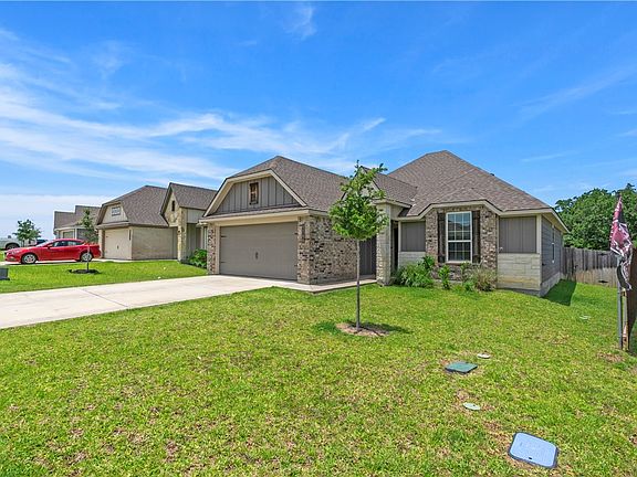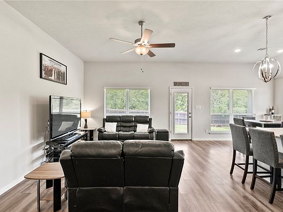 The private primary suite features granite countertops, a soaking tub, and separate shower. Three additional bedrooms and a full hall bath provide comfortable space for family or guests. Outside, enjoy a covered patio and a privacy-fenced yard—perfect for quiet evenings or weekend cookouts. Located near Highway 30 and steps from neighborhood amenities—walking trail and pond—pool construction is underway and a future park site! This home offers an exceptional alternative to nearby new construction listed at higher prices. Move-in ready, thoughtfully maintained, and positioned for everyday ease in Yaupon Trails.