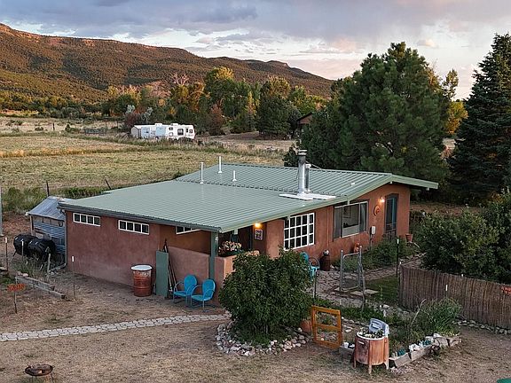 This unique home is situated on a quiet dead-end road, Poleo Road, named after the mint that grows along the banks of the acequia madre that flows through the property. This area is a very desirable agricultural zone in the heart of Costilla, with easy and quick access from paved roads. It is adjacent to Rio Costilla Livestock Association land that will remain undeveloped. It has attached water rights, drawing water from the Acequia Madre de Rio Costilla dating back to 1853. Farming and ranching opportunities abound here, as well as elk hunting. In this land, animals are more present than people, so elk, deer and other game are plentiful. This place is a birders' paradise! The home stands in a big open pasture, surrounded by agricultural fields. There is an abundance of mature landscaping including lilacs and garden beds, an aspen grove, plum orchard, as well as apple and pear trees, ponderosas, blue spruce, and more. The views are spectacular! To the north lies 14,000 foot plus Mount Blanca, and to the west sits the ancient volcano Ute Mountain. Sunrises and sunsets are amazing here. The peace, calm, and serenity are hard to beat anywhere in Taos County! This cozy, custom-built, three-bedroom home features exposed posts and beams, over 9 foot tall vaulted ceiling, and custom details like built-in shelving. The home is loaded with natural light, with large north-facing windows revealing the gorgeous scenery right outside. Right next to the home is a 12 by 20 foot workshop with many windows, on a cement slab. It is 2x6" framed and insulated and has electric as well as a wood-burning stove. There is another outbuilding for storage, which includes an insulated space for more climate control. The owners have taken a lot of pride in the maintenance and upkeep of this home and property, and have put a lot of work and time into making this place something special over the course of 3 decades. Take advantage of this! It's move in ready! -Electrical line is hidden, buried in the ground, not aerial. -Custom-made modern steel irrigation headgate. -Deep well, 150 feet deep -New roof, metal propanel put on in 2023 -Newer carport, 24 foot by 35 foot, 2020. Made extra strong, with more than enough room for 4 vehicles. -Workshop, Outbuildings/storage shed(s) -Plenty of space to add additional buildings and features. -Bring your horses! -Fiber Optic Internet -Fenced-in yard This property is also featured in the combined listing of 47B Poleo (MLS# 113794) and combined MLS#113912