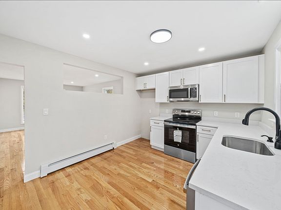 Settle your family down on this quiet cul-de-sac street conveniently nestled off Concord Street, Rockland. This newly renovated 2-bedroom, 1.5-bathroom with 3 floors has plenty to offer. Be the first to step inside gleaming new hardwood floors and high ceilings. A brand-new kitchen awaits you, offering quartz countertops, new appliances and cabinetry; perfect for preparing meals and entertaining guests. Natural light fills the spacious living area and bedrooms. Upstairs, 2 large bedrooms with brand new carpet and large closet space. This unit also features a large, CLEAN basement with laundry hook up and plenty of space that can be used as an in-home office or play den. Walking distance to Harmon Golf Club, as well as R Stewart Esten Elementary. Short distance to highway and commuter rail. Available to move in February 1st, 2025. Reach out today if you would like to book a showing! Don't miss out on the opportunity to be the first! Tenant pays Oil & Electric.