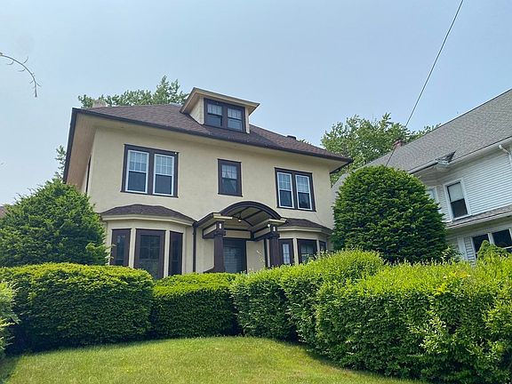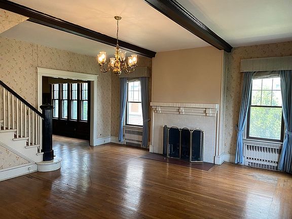 HISTORIC COLONIAL home used by local doctor for years with attached wing of approx 560 sq.ft for the practice with it's own entrance. Reduced $40,000 for quick sale. House is good condition with roofs either months old and up to 4 years ago. New hot water heater &partial newer windows. Stunning main level with tall ceilings, big moldings, tall windows, formal dining & grand staircase to upper levels. Home can be updated as a grand home with in-law or live-in help quarters. This could possible gain a couple more bedrooms. Or, use as a professional office with on-site living for the business owner. Very stately and the uses are unlimited. If you need lots of space, this is the place - especially at this very attractive price. The two car garage is split in half with neighbor. Also note driveway is shared. If you need possible short term creative ideas, bring the proposal to this owner.