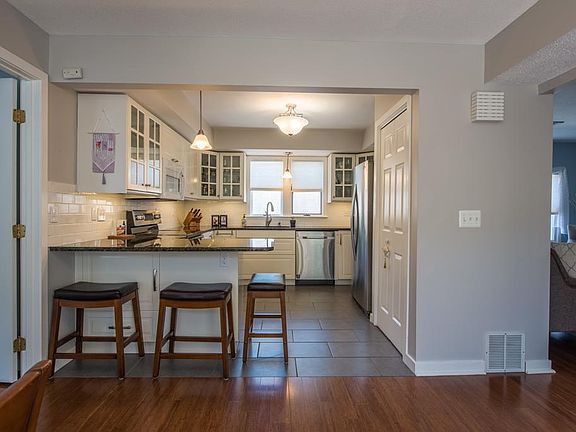 - Kit Dscrp: Countertops - Stone/Granite/Solid, Flooring - Stone/Ceramic Tile, Dining Area, Remodeled, Peninsula