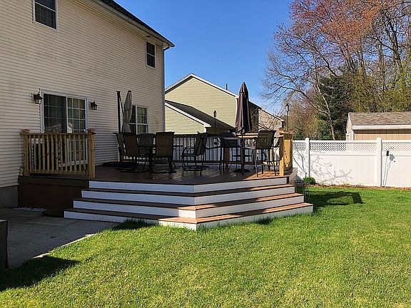 Wilbraham \Springfield borderline single-family 2 story house located on a quiet cul-de-sac street, 2 side front porch, pane windows, very bright sun lighting 4BR 3bathrooms open concept, finished basement, 2 car garage, large back yard, trek deck , pavers patio, pool with deck, sprinkler system.