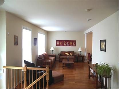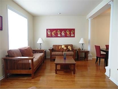 This home shows like a model. The floor plan is open with high ceilings on the main level and gleaming wood flooring. The new carpeting and contemporary lighting harmonizes this sun filled home. Impeccably maintained and improved with quality updates throughout. Location, location! Lush mature trees border the rear of the property offering a private balcony, perfect for relaxing and entertaining and just a short walk to the neighborhood pool, playground and tennis courts. The home is convenient to nearby shopping and restaurants and accessible to major roadways for commuting. This home stands apart from the rest and is A Must See!