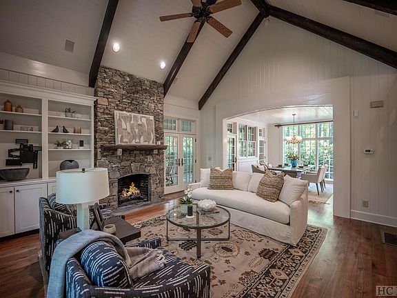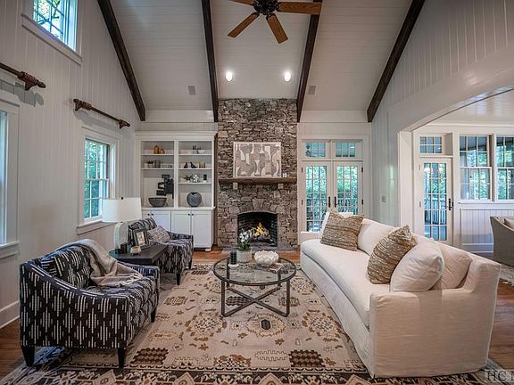Peaceful mountain living awaits you in this charming cottage tucked away in the gated Arrowhead community. This beautiful home features cathedral ceilings in the living room, which complement the eye-catching stacked stone fireplace. The primary suite is conveniently located on the main level, and two additional bedrooms with en suite baths are located upstairs. Off the dining and living room, you will find a large screened porch with a stacked stone fireplace and an open deck attached for grilling. Arrowhead is a lovely, intimately-sized community where residents can relax in an almost maintenance-free lifestyle, as the community takes care of all landscaping for its property and residences. Homeowners may also enjoy the neighborhood's beautiful chimney garden, an ideal place to gather with family and friends for a picnic and roast marshmallows by the fire. Situated only five minutes from all of the shopping, dining, and amenities of Cashiers, NC, this cozy home is waiting to welcome you. The home's main level has been professionally furnished by Atelier Maison & Co and is available for purchase separately. Don't miss out on this opportunity for immediate occupancy and start enjoy the season!