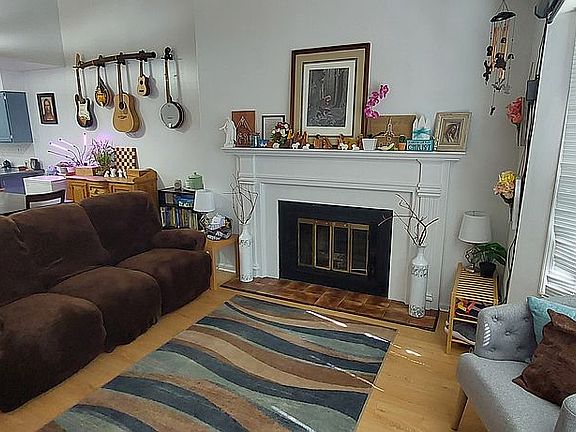 Large wood burning fireplace in the front room. Cleaned and ready for your next fireside movie.