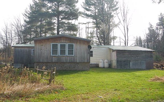 12x66 Single wide located on 3+ acres. Open floor plan with propane hot air and wood stove for heat. Large living room kitchen combo. Knotty pine tongue and grove ceilings. 20x20 addition that is currently used as a den/game room but could be made into a master bedroom, family room or whatever your heart desires. Large enclosed porch. Quiet area with plenty of potential.