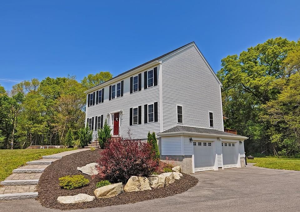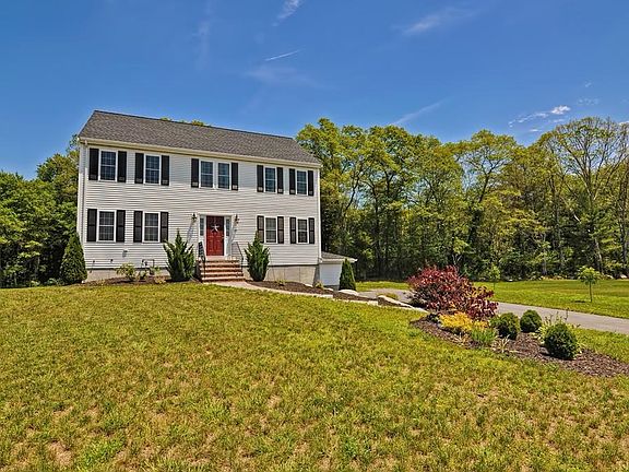 BETTER THAN NEW! 2013 young Colonial-desirable Auglis Estates.4 BR's,2.5 bths,2 Car Over-sized Garage,2100+ square feet! 1 ACRE LOT. 1st Floor features open floor plan w/gleaming hardwoods+crown moldings. Chair rail in formal Dining Rm.Gourmet Kitchen w/upgraded Maple cabinetry,soft close drawers+roll out shelving. Stainless appliances w/Gas Stove. Lots of Granite countertop area for your best meal prep! 7 foot Granite Island seats 4. Eat in kitchen opens w/French Doors to private deck over looking lush conservation land.1st Floor laundry.1/2 bath-Granite vanity+extra large shelved food pantry completes main floor. 2nd floor has front to back Master BR+ Bath, walk in closet w/custom shelving. Ample whole house Hot water w/Rinnai tankless system. Double vanity, Granite Full bth. 3 more good sized BR's. Partial finished Bonus Rm in bsmt w/full size windows feels like main floor. Stretch Energy Code Compliant, 2 miles to Rt 24, 10 min to commuter rail. 1 year home warranty incl