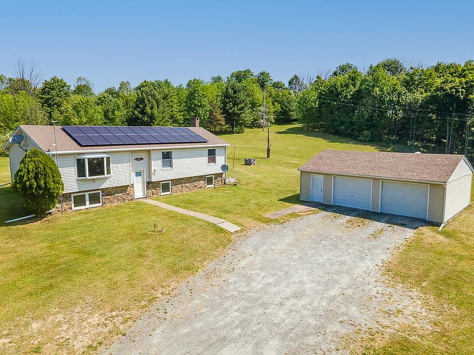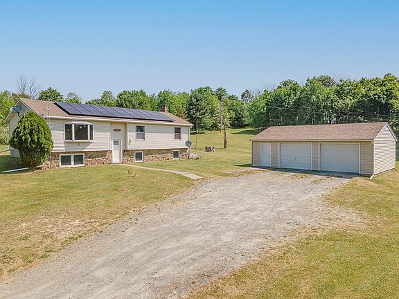 A secluded get away that comes with an affordable price tag? That's right! You won't believe how beautiful the setting is at this 1,994 sq ft raised ranch. 3 bedrooms and 2 full bathrooms, one of which is in the primary. The full, dry basement has large windows and would be easy to finish to double the sq ft. Solar, generator, and a coal stove! Plenty of sunny yard for gardens, pool, or add a pond. This property is a homesteaders dream. Attached 2 car garage for extra storage or workspace, and a beautiful private driveway. List of updates in MLS. Showings to begin 6-24. Open house 6-25, 12-3pm