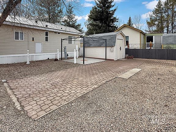 CORNER LOT in Leisure Time RV Park with vinyl fencing, covered patio with pavers & Payette River & Community Pool access.