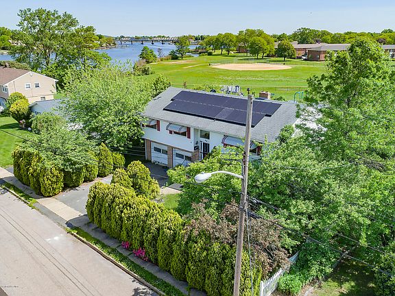 Live comfortably in this large, split-level home tucked away behind tall Cherry Laurel evergreens in the desirable Pleasure Bay section of Long Branch. Enjoy captivating sunsets and river views from your back deck. Plant a garden in your front yard. Located on a private, low traffic cul-de-sac with newly renovated homes. Great investment to redesign, reinvent and refurbish. Renovations already started. Pretty remodeled eat-in kitchen with stone counter-tops, new wood cabinetry, center island w/skylight and new SS appliances. Lovely renovated full bath. Open concept with hardwood floors throughout upper level. Family room w/wood stove on brick wall. Ideal location w/close proximity to beaches, Pier Village, Race Track, shopping, dining, night life and transportation to NYC. AS IS SALE.