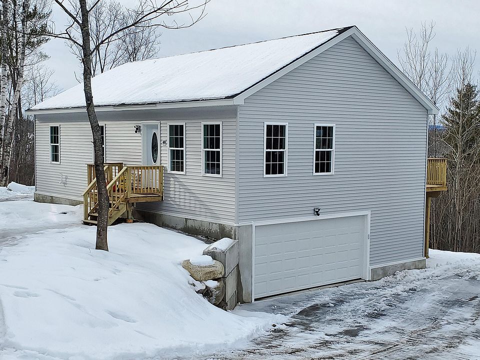 Newly completed new construction! Beautiful ranch style unique home 3br, 2bth, 1 half bth, 2 car garage on beautiful wooded lot with mountain views offering open concept kitchen and living room area, kitchen island, vaulted ceilings, main floor laundry room, and daylight walkout basement with family room. Hardwood vinyl plank throughout, beautiful interior oak stairs, and granite countertops with subway tile backsplash. Front porch for sitting, and rear deck for enjoyment and family BBQs. Close to schools, town, and shopping. Belmont Drive Lots 33, 34, & 35 available for additional land if desired. Seller is a licensed real estate professional in the State of Maine