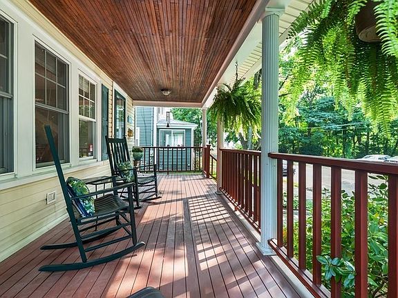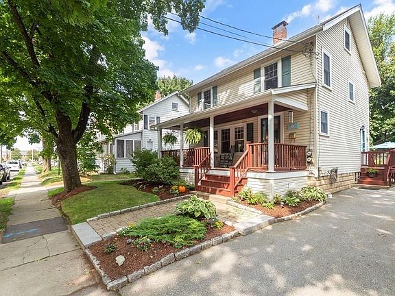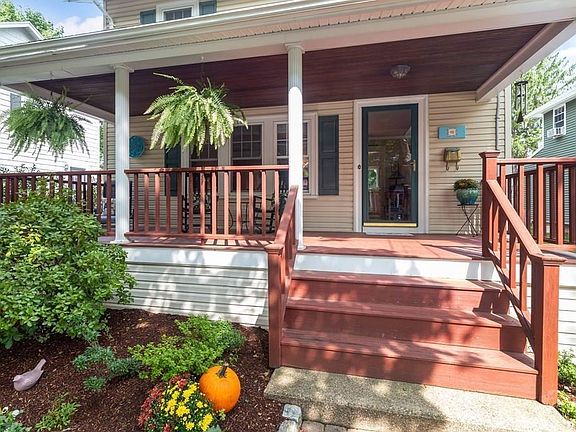Beautiful, bright & updated 3 brm, 2 full bath Colonial w/mahogany Farmers porch! Lovely fireplaced living rm w/hardwood floor & recessed lights opens to formal dining rm w/hardwood floor & walk in closet! Bright white kitchen w/recessed lights! 1st floor full bath w/beadboard & tiled tub/shower! 2nd floor has large master brm w/recessed lights, hardwood floor & 2 large closets! 2 additional bedrooms w/closets & hardwood floors! Full bath w/beadboard, corian counter, tile floor & jacuzzi tub! Vinyl siding & windows! More updates include fireplace chimney liner in Feb 2020, irrigation system w/2nd meter in 2018, fenced yard in 2017, architectural roof in 2006 & more! Gorgeous private fenced backyard w/amazing landscaping w/extensive flowering bushes & plants, large shed & huge 15x32 paver patio w/fire pit is great for outdoor entertaining! Great commuting location, close to everything and minutes to train, all major routes, schools & shopping!