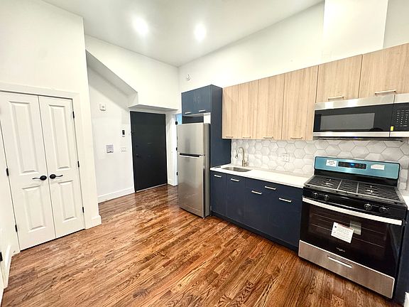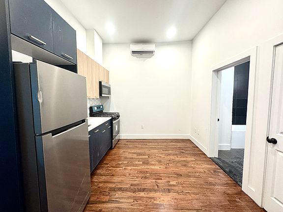 Be the first to call this beautifully renovated 1-bedroom, 1-bathroom apartment your home! This brand-new unit features soaring high ceilings and sleek hardwood floors throughout. Enjoy year-round comfort with modern wall-mounted AC/heating split units. The kitchen is equipped with brand-new stainless steel appliances, and there are convenient in-unit washer and dryer hookups. Additional features include a video intercom system for added security and peace of mind. This thoughtfully designed apartment offers both style and functionality schedule your tour today!