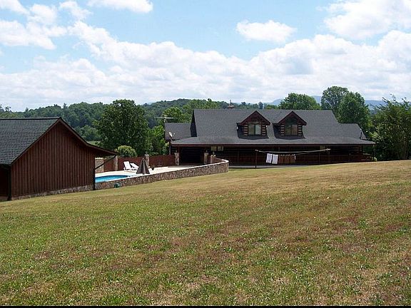Custom built log siding home with heavy timber roof system. 2500 sft. front and back porches. Bright and cheerful interior. New roof, pool liner, and exterior staining within the last 5 years. 4 full baths if you include pool house and basement. Currently basement and pool house are also serving as additional bedrooms allowing for 5 separate bedrooms spaces total. There are 3 full laundry rooms (pool house, main level, and basement). Each bedroom has a huge walk in closet.