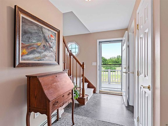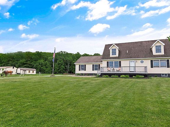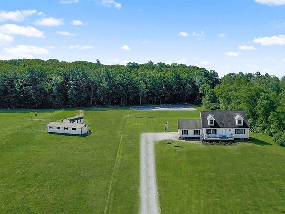 Picturesque 12-acre equestrian property,w/low taxes!Everything needed to train&care for your horses!4-Stall 12x12 barn w/feed room,hay storage outbuilding,round pen for training,riding arena,jumping area&trail system in the woods for a pleasure ride or cooler option to work horses.Inviting home w/3beds,2.5baths&2-car garage.Open living&dining room design w/sliding glass door leading out to a newer deck.Sunny kitchen w/new flooring,new SS dishwasher&gas range.1st-floor master suite w/spacious his&her closets.New tiled flooring in master bath.Easy clean tilt-out windows throughout.Trex deck in front of the home where you can soak up scenic views of the property.Lilac trees,honeysuckle,white&red oak trees.Seasonal water views of the Hudson&views of the balloon festival from your front yard!