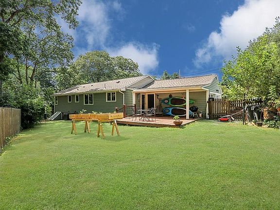 .Precinct 1! One floor living at its best. Spacious, beautifully updated, solar enhanced, home with open floor plan that is located within walking distance to Dedham's new Early Childhood Education Center. Lovely, bright, living room with wood burning fireplace that opens to the dining area. Kitchen with wood cabinets, soapstone counters, and stainless steel appliances. Spacious en suite master bedroom, two additional queen size bedrooms that share a full bath, radiant heat in hall bath- all with good closet space. Radiant heat in both bathrooms. Large unfinished basement with laundry, utilities, storage, and lots of potential. Attached 2 car garage, deck, and private fenced back yard. Situated on a corner lot in a quiet neighborhood convenient to village and mall shopping. Also nearby are schools, Motherbrook Art Center, 200+ acres of walking trails at Wilson Mountain, major routes and commuter rail to Boston, Providence and NYC. Offers reviewed Tuesday 6 PM