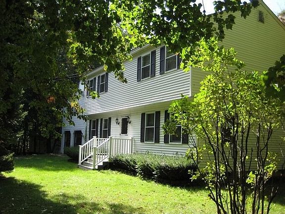 4 bedroom Garrison set back off the road. Front to back living room, formal dining room, kitchen with breakfast bar. Family room with brick hearth & woodstove. Great 3-season porch. 2-car garage with full story workshop (or future living space) Nice yard.
