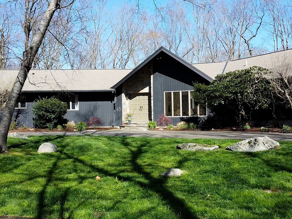 Nestled in a serene and private setting surrounded by nature, 48 Breeds Hill Place offers the perfect blend of contemporary style and tranquil living and could be described as a Scandinavian modern - combining warm natural materials with clean lines and abundant light. Owned by an architect, this 4/5 bedroom home has been thoughtfully updated and meticulously maintained with stylish upgrades and luxurious amenities throughout. As you approach the property, you'll be greeted by a circular drive and lush landscaping, setting the stage for the architectural masterpiece that awaits. Step inside, and you'll immediately be struck by the abundance of natural light and the seamless flow of the open-concept living spaces. The heart of the home is the newly renovated kitchen, featuring sleek cabinetry, a waterfall countertop and top-of-the-line appliances. Whether you're hosting dinner parties in the formal dining room or enjoying casual meals outside on the deck, the kitchen is sure to impress even the most discerning chef. Entertain guests in style in the spacious living room, complete with a large stone fireplace and expansive windows that frame picturesque views of the surrounding landscape. The lower level offers additional living space, with a family room that walks out to the back yard, perfect for indoor-outdoor living. Plus, with a wine room, workout room, and game room, and cedar sauna there's no shortage of options for relaxation and recreation. Step outside, and you'll discover your own private oasis, featuring expansive decks that make you feel as though you're living in a treehouse, a hot tub for soaking under the stars, and lush landscaping that provides the perfect backdrop for outdoor gatherings and quiet moments of reflection. There's plenty of space for parking and storage as this home has both a two car attached garage as well as a detached two-car garage with a huge bonus room above, offering endless possibilities to create an additional home office, art studio, or guest suite. Located in the sought-after town of North Wilton, this home offers a peaceful retreat from the hustle and bustle of city life, while still providing easy access to shopping, dining, and commuter routes. Don't miss your chance to experience the ultimate in luxury living at 48 Breeds Hill Place.