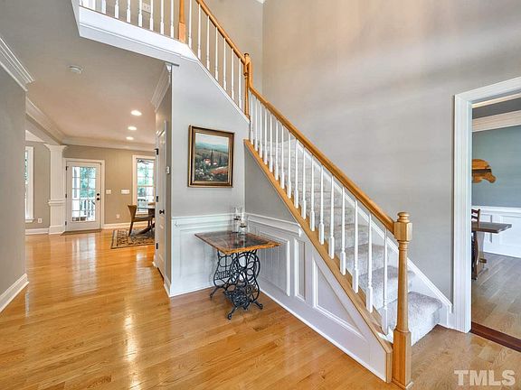Spacious home on large private, cul-de-sac lot with incredible expansion opportunities. Gourmet kitchen with large island, granite counters, 5-burner gas range opens to family room with custom stone fireplace. Beautiful hardwoods downstairs. Large owner's suite w/ spa-like bath. Walkup 3rd floor is ready to finish - already plumbed for a bath! Enjoy the outdoors on the screened porch, grilling deck & stone patio. Fully fenced yard. Walking distance to downtown Pittsboro & nearby trails. Neighborhood pool!