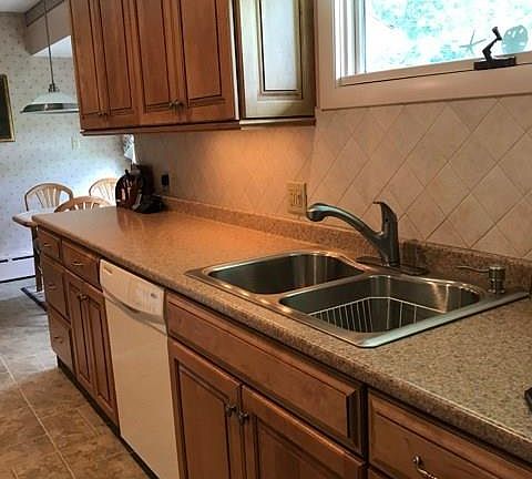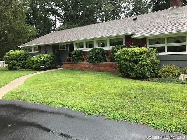 Updated and upgraded ranch house maintained with love. One floor living at its best with hardwood floors throughout, central air, two indoor fireplaces plus an outdoor fireplace on the patio for your barbecues. Storage/closet space galore. This house sits elegantly on almost an acre of flat land, blueberry bushes and a circular driveway in the front. Open living room and dining room. Full bath with stall shower plus jetted tub. Laundry is currently on lower level, however there are hookups on main floor. Spacious family room on lower level. Backyard shed for storage of lawn mower, snow plow, etc. Cast iron baseboard heat plus central air. Pristine, polished and with plenty of space, this should be your first choice!