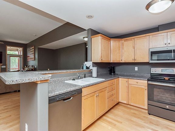 Beautifully updated condo in Mayfield area. 2 BR up and 1 in lower level. Screened in porch and deck overlook pond. Walk out lower level with patio. Hardwood floors upstairs and tile in the basement. All stainless steel appliances and washer and dryer included. 6 panel doors. Snow removal and lawn care maintained by association including all concrete shoveled except back patios.