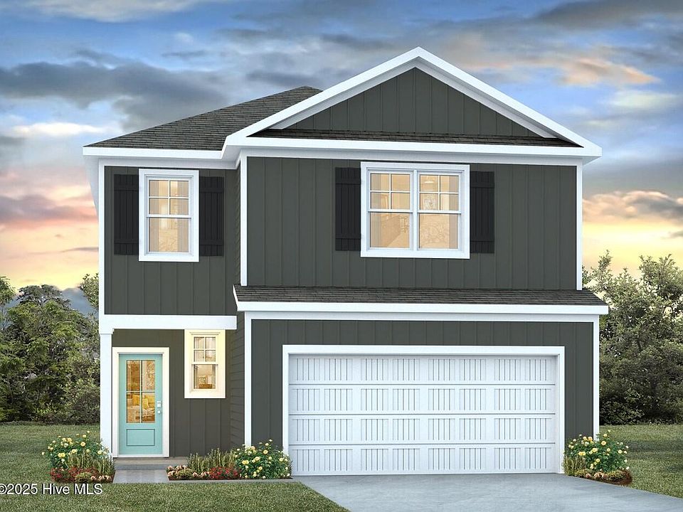 Welcome to the Pines at Blake Farm! The Manning floorplan features a large open living and dining space. The open-concept family room, kitchen, and dining area feature stainless steel appliances, including a smooth-top range, dishwasher, and overhead microwave. The first-floor primary suite with a double bowl vanity and a spacious walk-in closet. The second floor includes three secondary bedrooms, loft, and a versatile upstairs living space. Home Is Connected® Smart Home Technology is included in your new home and comes with an industry-leading suite of smart home products including touchscreen interface, video doorbell, front door light, z-wave t-stat, & door lock all controlled by smartphone app with voice! Blake Farm is conveniently located near Highway 17 and I40, offering easy access to downtown Wilmington, Raleigh, Porters Neck, and Hampstead. Residents can quickly reach Mayfaire, grocery stores, and hospitals within a short drive. The amenity center will include a swimming pool, multi-sport court, and fire pit, ensuring a well-rounded and enjoyable living experience. The photos you see here are for illustration purposes only, interior and exterior features, options, colors and selections will vary from the homes as built. Estimated completion Winter 2025-2026.
