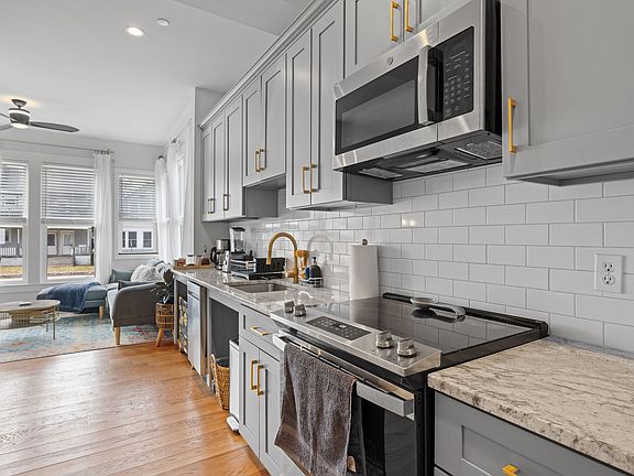 Come be the next resident of the stunning, new luxury apartment building, 48 Brook, in Manchester's prime North End! Great walking location only a few minutes from Elm St; easy access to restaurants, cafes, shopping, yoga, nightlife and more, yet removed from it all on a peaceful, quiet residential street. Just a couple of minutes away from highway access, close to local hiking/skiing and only about an hour from Boston, and an hour from the White Mountains. This apartment has one dedicated off-street parking spot right close to the front entrance, as well as ample street parking in the neighborhood. The building has been completely renovated with care and loving attention to every detail, and is essentially brand new construction, with new plumbing, electrical, HVAC, sprinkler system and even new roof. It's energy efficient and sound insulated. The apartment has many large windows, and an abundance of natural light. This historic building is now enjoying a modern, elegant design with open floor plans, hard wood floors, high quality fixtures and hardware, sleek, attractive lighting and ceiling fans, and state of the art security camera system for safety. The building features a brand new laundry room (mobile operated) with top of the line commercial grade washers & dryers. Kitchen features: High-end, solid wood, soft-close kitchen cabinets with brass hardware and crown molding, gorgeous granite counter tops, tile back splash, and stainless steel GE appliances: oven, microwave, refrigerator, and dishwasher. Bathroom features: floor tile, and tub/shower tile, high quality vanity and lighting. This unit also features: - Energy efficient mini-splits for Heat/AC - Luxurious High Ceilings! - Gorgeous kitchen island bartop! - Elegant French Doors Please note, most of these pics are featured furnished units. This vacant apartment, Unit 202, comes unfurnished. Floor plan is attached, with some pics of apartment itself (all of the unfurnished ones). Also note: the 2nd bedroom of this apartment does not have a closet however there is plenty of space for a wardrobe. It has french doors as well, so curtains would need to be installed for full privacy. Apartment available December 1! Please message to schedule a showing ASAP and share a little bit of information about yourself including: how many occupants, why are you moving, income, credit, pets etc. Also please share your availability for showings, we will schedule those starting in the next week. Application requirements: - Income 3x monthly rent or qualifying co-signer - Good Credit and references - Background check will be conducted - Pet-friendly, dogs and cats are allowed! There is a monthly pet fee - Month-to-month lease - First month's rent and security deposit equal to one month's rent is required at lease signing - Water, trash/recycling pickup, and landscaping/snow removal included. - Smoking is strictly prohibited anywhere on the premises, indoors and outdoors. Please do not apply if you smoke.