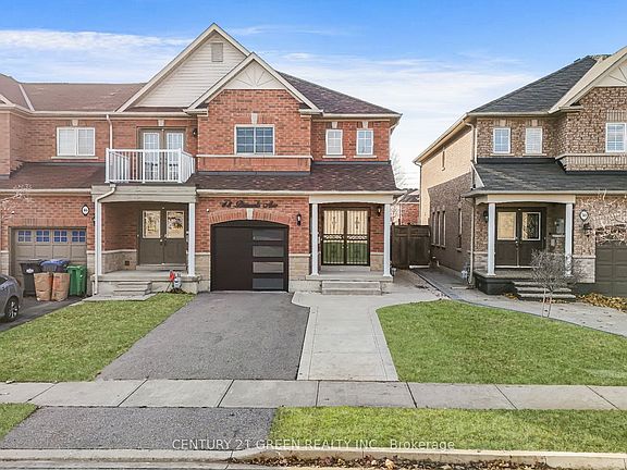 !!Absolute Showstopper!! Don't Miss This Immaculate END-UNIT Townhome - More Like a Semi-Detached Offering nearly 1,800 Sq ft of Above Grade Living Space. This Turnkey Home comes with Stress Free Living loaded with every Upgrade and Feature you could think of. With Almost $90,000 Invested, Every detail reflects quality and craftsmanship at its finest. The main floor opens into a bright open-concept living with a spacious great room enhanced with smooth ceilings and pot lights. Kitchen comes equipped with High End Smart-Technology S/S Appliances, Quartz counters, Ceramic tile, modern backsplash & water filtration system. Breakfast area walkout to a private concrete backyard perfect for family gatherings and guests entertainment. Completely carpet-free with brand-new Engineered Hardwood flooring on both levels & fresh paint throughout with an upgraded stylish Iron Spindles Staircase. Double-door Primary Bedroom showcases a Walk-In Closet and a Spa-Like Ensuite with glass door standing shower upgraded with premium porcelain floor and wall tile. All bathrooms upgraded with Quartz Counter, Under-Mount sink and Black Faucets. Added convenience and Extra Parking with an extended concrete driveway and paved sidewalk. Additional Highlights Include Central Vacuum, Brand New Garage door, Blackout Blinds, Security Metal Front Gate, Security cameras and more. Area features parks, schools, golf course, public transit. Close proximity to Hwy 410, Trinity Common Mall, Heart Lake Conservation & major plazas. Ideal for first-time buyers, families, Investors, Commuters & nature lovers. Truly a "SEE IT TO BELIEVE IT" Home - FEELS LIKE A BRAND NEW BUILT. Book your showing and experience the living This Home and Neighbourhood has to offer. **Kindly See Upgrade & Feature Sheet Attached In the photos.**