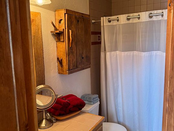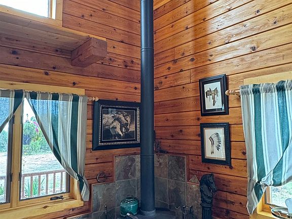 MAJOR PRICE REDUCTION !!!!! PRICE HAS BEEN REDUCED OVER $50,000. MOTIVATED SELLER !!!!!!! SELLER WANTS THIS PROPERRY SOLD NOW BRING US AN OFFER !!!!!! BEING SOLD " AS IS " Nestled in Mature Pinon and 100+ year old Juniper trees sits this one-of-a-kind log home. The red cedar logs and interior wood treatments give the feeling of comfort and pride of ownership. There are two sleeping areas, the master bedroom on the first level and a spacious loft used as a second bedroom. Tile floors with in-floor radiant heat along with a Lopi wood burning stove provide all the necessary heat for those cool winter evenings. The kitchen is equipped with stove. microwave, dishwasher and custom cabinets. Tile counter tops finish off this efficient kitchen. A partially finished green house/multipurpose building has been added to one side of the house. A new separate garage was recently added for vehicle storage. There are many more amenities present at this secluded location including megnificent views. There is a good producing well. Privacy is at a premium as the property slopes at the back.