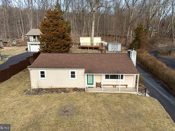 Nestled on the outskirts of Perkiomen Township in the Perkiomen Valley School district, you’ll find your new home. Just under 1300 sq.ft., this ranch home sits back from the road on a fantastic piece of property and is completely ready for its new owners. As you turn onto Cedar Road you’ll find yourself feeling like you are driving up a private lane, with loads of mature trees flanking both sides of the road. Before you ultimately arrive at your home, you’ll be pleased to see that just a few steps from your property is access to the Perkiomen Trail, where you can bike, walk, run or just enjoy nature. Arriving at the home you’ll notice its set far back from the road and has an extra-long driveway, giving you tons of front yard space. A large front porch welcomes you – can’t you just picture yourself sitting out here with your morning brew enjoying the view? Stepping inside, the gorgeous engineered hardwood flooring is the first thing that greets you as your eyes shift right to the gorgeous brick surround of the wood burning fireplace in the living room. There is a large bay window at the front of the home for you to enjoy all the nature light that comes in, as well as the views from inside your home. The living room leads right into the eat-in kitchen, with cherry cabinetry, granite counters, island with room for stools, tile backsplash, large double under mount sink, 5-burner propane stove, stainless appliances, tile backsplash and pantry. The breakfast area has plenty of room for a nice sized table and has French doors to the back yard. A double door laundry area and storage closet is off the breakfast area. All the way down the hall is the primary bedroom, with double door closet and its own full bath with tiled walk-in shower with built in seat and tile flooring. 2 additional bedrooms, both with double closets, share a 2nd full bath with tub/shower and wainscoting. There are also 2 closets right outside the hall bathroom. Ready for more? Stepping out the French doors from the kitchen area, you’ll land on a large patio area with retaining wall with plenty of space for your outdoor furniture, grill, etc. There is a storage shed, tool shed, and a large additional building with deck. This building could be used as a workshop, outdoor play space, home office, home gym, or additional storage space. The driveway is lined with mature trees and the wooded space behind the home provides the perfect back drop for privacy. Several other great features of this home include newer windows and front door, ductless A/C, all new well pump components, new hot water heater, new refrigerator PLUS a super convenient location close to Spring Mount Ski Area, schools, major roadways, shopping and more. Don’t let this one slip away from you!