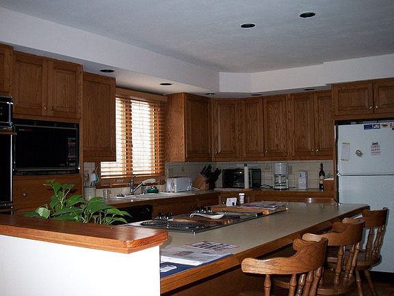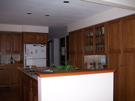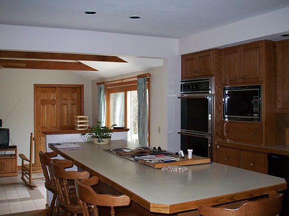 Updated, well maintained, 3 car garage, farmers porch, tiled 1st flr FM w/vaulted clg, opens to custom kitchen, fully appl?d, lg island w/Jenn Air, extra wall of oak cabinets, hdwd DN, LV, entry, 2nd flr hall & master, front to back LV & master, master w/access to full bath w/whirlpool tub, ? bath on the 1st flr, fpl, 2 decks, walk-out basement