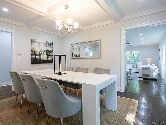 Welcome Home An exceptional transformation and remake to behold As close to perfection as can be Astounding re-do of this classic New England colonial located on a prime North Stamford cul de sac. Total turn-key project with fine finishings redone kitchen and baths, coffered ceilings, crown moldings, lots of fine craftsmanship and high end materials .The lucky new owner has absolutely nothing to do but move right in Rare 5 Br home with a BR on the first floor for those that have the need. Three full luxurious levels of living Finished walk out lower level adds more great space . Loads of sunlight throughout Sizable eat in kitchen with a large bay window a generous pantry and sliders to a sweeping deck overlooking a nice backyard. Extraordinary home available for immediate occupancy